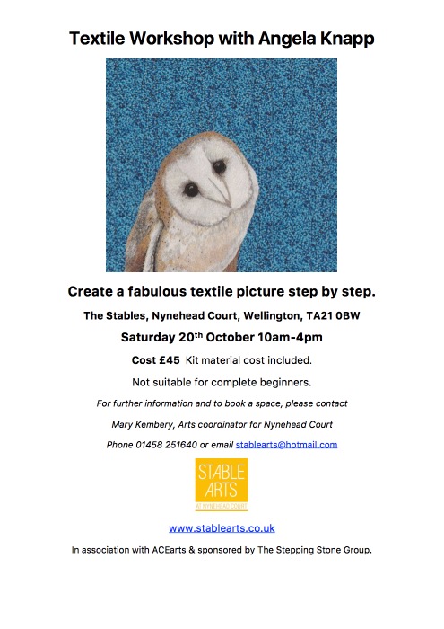 As part of Dorset Art Weeks, there will be an exhibition of Kate Dowty's contemporary quilted wallhangings, from 26 May–10 June 2018. It will take place at 5 Lodge Lane, West Allington, Bridport DT6 5QR.